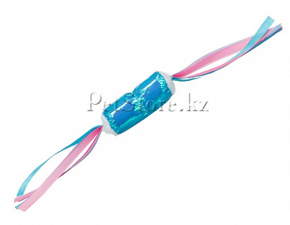 Яркая мягкая игрушка из блестящей полиэстеровой ткани. С обеих сторон каждая игрушка имеет несколько разноцветных ленточек для большего привлечения внимания кошки.