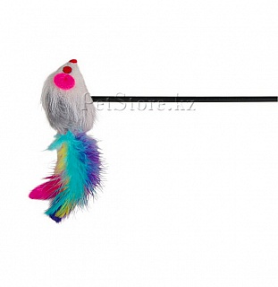 Для игр с кошками. Меховая мышка с разноцветными перьями. Мышка пропитана кошачьей мятой.