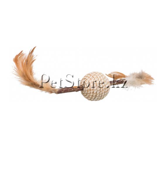 100% натуральный мататаби с перьями и шариком из льна и акрила. С погремушкой. Поддерживает гигиену зубов.