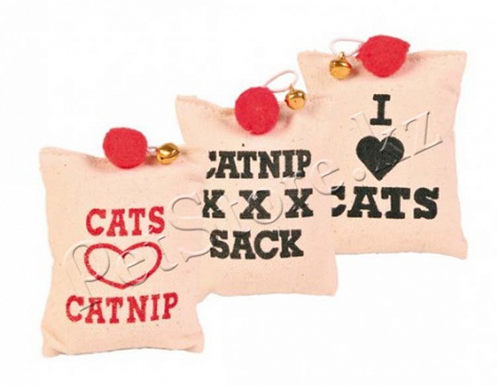 Мешочек пропитан мятой, маленький колокольчик дополнительно привлечет внимание вашего любимца.