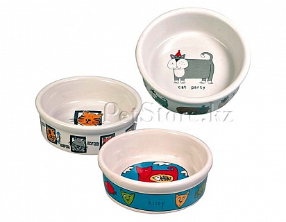 Миска для кошек и собак мелких пород из высококачественной керамики с рисунком на дне миски и по бортику. Благодаря своему весу миска не двигается по полу, обеспечивая животному комфорт при принятии пищи.