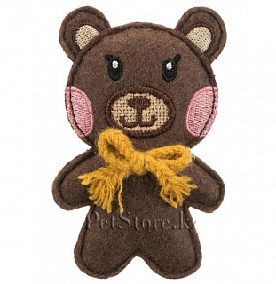 Игрушка выполнена из плотной ткани и имеет джутовую вставку. Игрушка полностью безопасная, поскольку не имеет мелких пластиковых приклеенных деталей, которые питомец может легко отгрызть и проглотить.