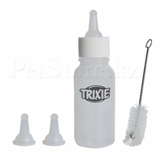 Бутылочка с тремя сменными сосками специально предназначена для кормления молоком новорожденных животных, таких как котята, щенки и им подобные. Отметки на бутылочке позволяют отмерять необходимое количество молока. В комплекте ёршик для бутылки.