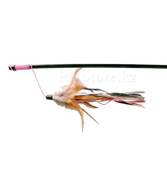 Удочка с ремешками из кожи и перьями. Пластиковая ручка.
