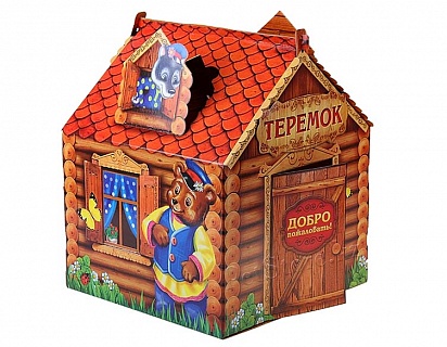 Домик выполнен из картона, что делает уход за изделием максимально лёгким. Будка стилизована под всеми любимый теремок, который всегда ждёт вашего питомца в гости!