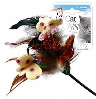 Дразнилка стек с перьями и бабочек из войлока.