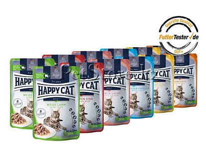 Для поддержания здорового обмена веществ кошкам необходим влажный корм. Happy Cat в соусе с ягненком содержит более 90% животного белка, который легко усваивается и при этом очень вкусный.