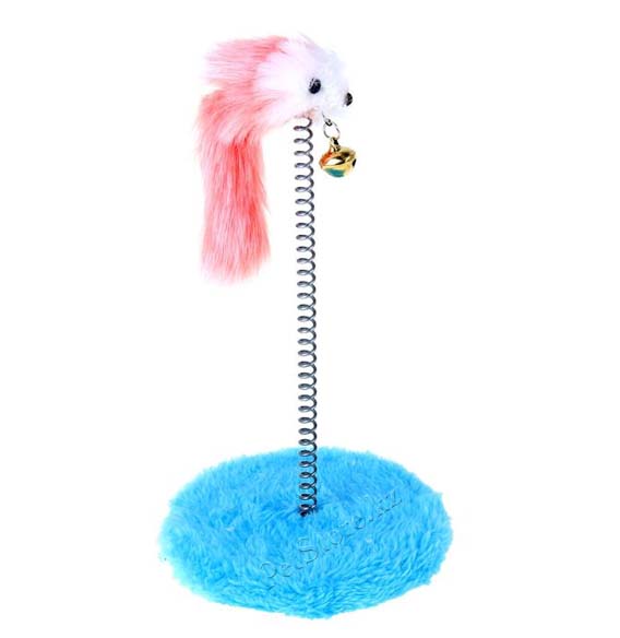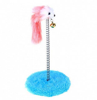 Плюшевая мышка закреплена на пружине и при прикосновении к ней начинает сотрясаться, привлекая внимание кошки.