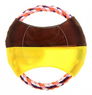 Игрушка для собак в виде прочного канатного кольца, сплетенного из натурального хлопка, с тканевой перемычкой. Удобна для игр и тренировок, отлично массирует и очищает десны и зубы.
