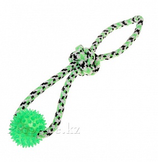 Удобная ручка-петля позволяет крепко держать игрушку в руке, веревка и мяч сделаны из хлопка, игрушка довольно прочная, не ранит собаку, не имеет неприятных запахов.