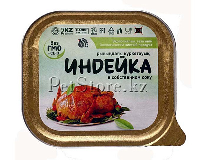 Филе индейки в собственном соку. Обладает отличными вкусовыми характеристиками и полезными свойствами. Гипоаллергенный продукт при высоком содержании калия делает его идеальным для животных, страдающих чувствительностью к потреблению соли. Диетические характеристики с высоким содержанием белка при минимальных значениях углеводов и жиров обеспечивает идеальный рацион для кошек и собак.
