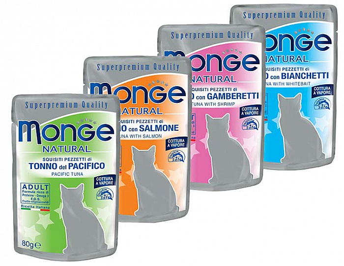 Monge сбалансированный влажный корм в желе для кошек в ассортименте.