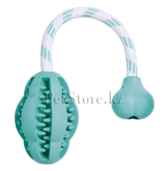 Удобная ручка для безопасного и безболезненного удержания игрушки, даже если собака будет тянуть с большим усилием. Игрушка ароматизирована ментолом, что обеспечивает свежее дыхание вашего питомца.