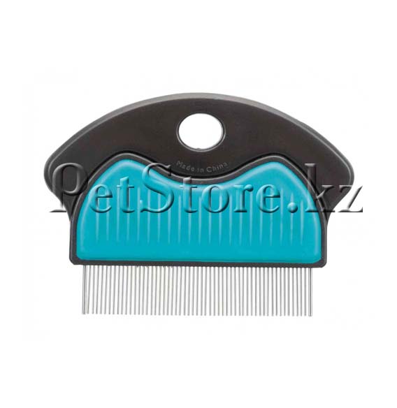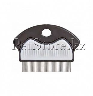 Металлическая расческа для быстрого поиска блох и клещей. Удобный резиновый держатель.
